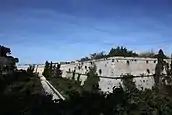 Most of the eastern walls of the city consist of an en crémaillère enciente built in the mid-16th century, although parts of the walls date back to the medieval period.[18] The pentagonal Despuig Bastion, built in the 1740s during the magistracy Ramon Despuig, is grafted below the walls on the northeastern corner of the city.[29]