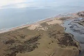 The sand dunes at Forvie can be divided into three distinct parts. The southernmost point of the reserve consists of a sand spit at the point where the River Ythan enters the sea. To the north the sand rests on raised beaches terraces and glaciated rocks. North of this region is an area where the sand lies on top of a rock plateau, with glacial deposits of varying depths sandwiched between the rock and the sand.[10] The dunes are highly mobile, and can reach up to 20 m in height. As there is relatively little plant life on these mobile dunes, they have been likened to the Sahara Desert.[11]