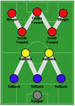 Modern team formations generally include one to three forwards; for example, the common 4–2–3–1 formation includes one forward.[1] Unconventional formations may include more than three forwards, or none.[2][3]