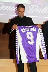 The second striker position is a loosely defined and most often misunderstood description of a player positioned in a free role, somewhere between the out-and-out striker, whether he or she is a "target man" or more of a "poacher", and the number 10 or attacking midfielder, while possibly showing some of the characteristics of both. In fact, a term coined by French advanced playmaker Michel Platini, the "nine-and-a-half", which he used to describe the playing role of his successor in the number 10 role at Juventus, Italian playmaker Roberto Baggio, has been an attempt to become a standard in defining the position.[18] Conceivably, a number 10 can alternate as a second-striker provided that he or she is also a prolific goalscorer; otherwise, a mobile forward with good technical ability (dribbling skills and ball control), acceleration, vision, passing, and link-up play, who can both score and create opportunities for a less versatile centre-forward, is more suited. Although they are often given "licence to roam," and either run forward, or drop further back in order to pick up the ball in deeper areas, giving them more time and space in possession, second or support strikers do not tend to get as involved in the orchestration of attacks as the number 10, nor do they bring as many other players into play, since they do not share the burden of responsibility, functioning predominantly in a supporting role as assist providers.[19][20] In Italy, this role is known as a "rifinitore", "mezzapunta", or "seconda punta",[21][22] whereas in Brazil, it is known as "segundo atacante"[23] or "ponta-de-lança".[24]