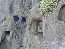 The Four Doors cave, or Cuatro Puertas cave, in the northern part of Montaña Bermeja and near the summit,[3] is a 17 X 7 metres[2] man-made cave opening towards the north-east, dug in tuff and provided with four large doors, all opening onto the same large space. These doors may have been shut some coverings, made of skins or other materials.