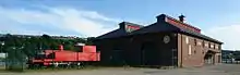 The steam locomotive exhibited in front of the museum is a 3 ft (914 mm) narrow gauge locomotive built for the County Donegal Railways Joint Committee in 1907 by Nasmyth , Wilson &Co., originally numbered No.16 and named "Donegal". She was superheated in 1926 and then renamed and renumbered as No.4 "Meenglas" in 1937. The locomotive was withdrawn from service on 31 December 1959, when the CDJRC ceased to exist as a railway company.[4]