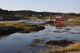 The island is rocky with heather-covered moorland as well as marshes and lakes. There are no naturally forested areas on the island. The highest point on the island is Besselvassheia, at 76 metres (249 ft) above sea level. The southern and eastern coasts are relatively smooth, but the northern coast is very jagged with many fjords and coves. Sletringen Lighthouse lies at the southwestern tip of the island.[1]