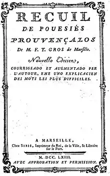 François Toussaint Gros (in classical Occitan Francés Totsant Gròs) was an Occitan-language writer from Provence.