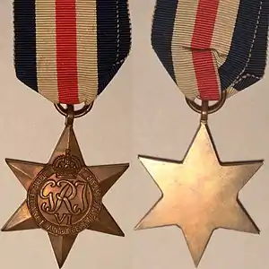 - The 1939–1945 Star with, when awarded, either the Battle of Britain or the Bomber Command clasp.[8]