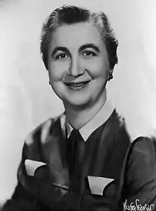In 1954, Horwich was appointed Head of Children's Programming for the NBC television network, where she supervised all of NBC's children's programming.[29] She moved to New York in early 1955 and Ding Dong School was then broadcast from New York.[40][37] In late 1955, a New York Times columnist, Jack Gould, cautioned Horwich over the use of a commercial for vitamins, implying that she inadvertently had encouraged children to swallow all pills that they found pleasing to look at: She "demonstrated how pretty the red pills were and how easy to swallow they were. 'To put it as mildly as possible, Dr. Horwich has gone a step too far in letting a commercial consideration jeopardize her responsibility to the young children whose faith and trust she solicits.'"[41] She remained Head of Children's Programming until 1956, when Ding Dong School was canceled in favor of The Price Is Right.[29][42] Horwich resigned from NBC in protest of the commercialism of children's education. She refused to advertise products a child could not use or that appeared to glorify violence.[28][20] She was asked to accept a sponsor whose product was BB guns; when Horwich refused, Ding Dong School was canceled.[29][lower-alpha 2] Horwich resigned from her position, but the network refused to accept her resignation.[45]