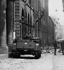 In 1977 the city of Bologna was the scene of violent street clashes. In particular, on 11 March a militant of the far-left organization Lotta Continua, Francesco Lorusso, was killed by a gunshot to the back (probably fired by a policeman), when police dispersed protesters against a mass meeting of Communion and Liberation, which was being held that morning at the University. This event served as a detonator for a long series of clashes with security forces for two days, which affected the entire city of Bologna.[15] Cossiga sent armored vehicles into the university area and other hot spots of the city to quell what he perceived as guerrilla warfare. Clashes with the police caused numerous casualties among people who got caught up in the riots, including uninvolved locals. No old leftist party, except the Youth Socialist Federation, led by local secretary Emilio Lonardo, participated at the funeral of the student Lorusso, showing the dramatic split between the movement and the historical left parties.