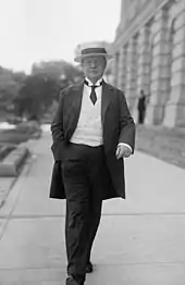 Newlands entered the United States Senate in 1903 as a Democrat. He supported the protection of the National Forests under the United States Forest Service in 1905, and the creation of the National Park Service in 1916.[9] He was a member of the Senate subcommittee that investigated the 1912 sinking of RMS Titanic.[21] In 1916, he was the only Democratic senator to vote against the nomination of Louis Brandeis to the U.S. Supreme Court.[22]