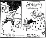 On Sunday, November 24, 1918, the bottom quadrant of The Rectangle featured Walter Weatherby Wallet and his neighbors Bill, Doc and Avery as they repaired their automobiles in the alley behind their houses. The corner was titled Sunday Morning in Gasoline Alley.