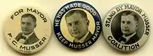 Campaign buttons for Mayor in Lancaster, PA - Frank Custer Musser