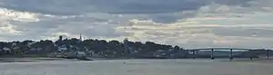 The Franklin Delano Roosevelt Bridge is an international bridge which connects the community of Lubec, Maine[1] in the United States with Campobello Island in the Canadian province of New Brunswick across the Lubec Narrows. The decked steel beam bridge is named for Franklin D. Roosevelt, the 32nd President of the United States, who maintained a summer retreat on Campobello (now preserved as Roosevelt Campobello International Park). A plaque in the middle of the bridge is the easternmost physical marker of the Canada–United States border.[2]