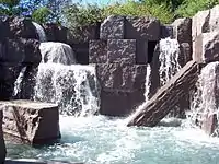 Running water is an important physical and metaphoric component of the memorial. Each of the four "rooms" representing Roosevelt's respective terms in office contains a waterfall. As one moves from room to room, the waterfalls become larger and more complex, reflecting the increasing complexity of a presidency marked by the vast upheavals of economic depression and world war.