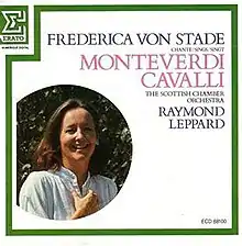 Frederica von Stade chante Monteverdi & Cavalli is a 48-minute studio album of arias by Francesco Cavalli and songs and arias by Claudio Monteverdi, performed by von Stade with the Scottish Chamber Orchestra under the direction of Raymond Leppard. It was released in 1985. A second, 54-minute version of the album, released in 1995 as Recital: Frederica von Stade: Cavalli, Monteverdi & Mozart Arias, added two bonus arias taken from Erato's 1978 recording of Mozart's Così fan tutte, on which von Stade sang Dorabella with the Orchestre Philharmonique de Strasbourg under Alain Lombard.[1]