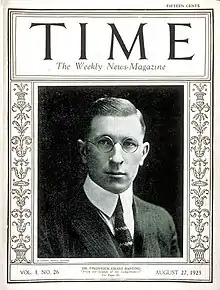 Prior to the award of the Nobel Prize in Physiology or Medicine for 1923[5][4]—which he shared with Macleod—he received the Reeve Prize of the University of Toronto (1922).[41] In 1923, the Canadian Parliament granted him a Life Annuity of $7,500.[7] Following the Banting's receipt of the Cameron Prize for Therapeutics of the University of Edinburgh in 1927, Banting gave the 1928 Cameron Lecture in Edinburgh. He was a member of numerous medical academies and societies in Canada and abroad, including the British and American Physiological Societies, and the American Pharmacological Society. In 1934 he was knighted as a Knight Commander of the Order of the British Empire (KBE)[8] and became an active Vice-President of the Diabetic Association (now Diabetes UK). In May 1935 he was elected a Fellow of the Royal Society.[1][42][43] In 2004, Banting was inducted into the National Inventors Hall of Fame.