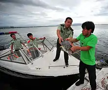 Yeh promotes environmental conservation through publicized sea turtle release events in China, and is vocal about ending sea turtle exploitation in Chinese media.[26][27][28][29][30][31][32][33][34][35] As he has said, "Their survival is our responsibility; we must create hope."[36] During interviews with journalists, he is known to use metaphors to facilitate the understanding of environmental conservation to the public. Yeh cautioned the Chinese public not to delay the increased protection efforts of sea turtles until they decline to the same population level as China's cherished Giant panda.[37] In addressing marine pollution problems in China, he reminds the public not to treat the ocean as an enormous toilet and garbage dump.[37]