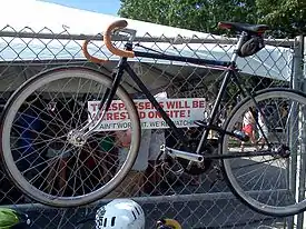 ![]() Bicycle hangs on a fence at Houston's Free Press Summer Festival 2012 | |