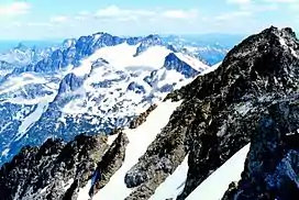 Fremont Glacier is located on the southeast slopes of Mount Logan, North Cascades National Park in the U.S. state of Washington.[2] The glacier is approximately .50 mi (0.80 km) long but nearly 1 mi (1.6 km) wide and flows down from just southeast of the summit of Mount Logan to an elevation of approximately 7,200 ft (2,200 m).