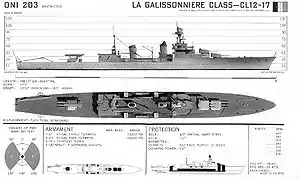 ![]() General layout of a La Galissonnière-class cruiser | |