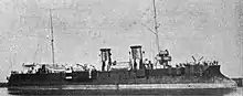 The ship remained on the Pacific station in 1902.[14] In January, she returned to Panama City, where she met the British cruiser HMS Amphion and the United States cruiser USS Philadelphia. Protet and Amphion remained there through June.[13] By 1903, the station had been reduced to Protet and a gunboat.[15] Protet remained on station in the Pacific in 1904, along with the gunboat Zélée and one transport aviso.[16] Protet continued to operate in the Pacific in 1905, and in January, she stopped in San Francisco to take on coal.[17] Later that year, her sister ship Catinat arrived in the Pacific to relieve Protet, allowing her to return to France.[18] In 1908, Protet was attached to the Gunnery Training School, along with the armored cruiser Latouche-Tréville.[19] The ship was struck from the naval register in 1910 and she was thereafter broken up for scrap.[5]