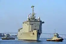 Following the Portuguese withdrawal, on 7 August 2015, the Ministry of Defense of Brazil announced the acquisition of Siroco for the Brazilian Navy for €80 million. The deal includes landing craft, spare parts, missile launchers for the Mistral missile, and training. The ship was renamed Bahia and given the identification number G40.[8][9] Provisionally commissioned into the Brazilian Navy on 10 December 2015, the ship officially incorporated the vessel into service on 10 March 2016.[9]