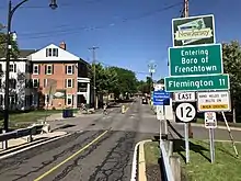 Frenchtown is governed under the Borough form of New Jersey municipal government, the state's most common form, which is used by 218 of the state's 565 municipalities.[42] The governing body is comprised of a Mayor and a Borough Council, with all positions elected at-large on a partisan basis as part of the November general election. A Mayor is elected directly by the voters to a four-year term of office. The Borough Council is comprised of six members elected to serve three-year terms on a staggered basis, with two seats coming up for election each year in a three-year cycle.[3] The Borough form of government used by Frenchtown is a "weak mayor / strong council" government in which council members act as the legislative body with the mayor presiding at meetings and voting only in the event of a tie. The mayor can veto ordinances subject to an override by a two-thirds majority vote of the council. The mayor makes committee and liaison assignments for council members, and most appointments are made by the mayor with the advice and consent of the council.[43][44]