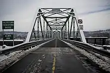 The first bridge across the Delaware at Frenchtown was a six-span covered wooden bridge built in 1841 on the five piers that still stand today, and the community became a gateway to Pennsylvania. The present day steel truss Uhlerstown-Frenchtown Bridge is a free Delaware River Joint Toll Bridge Commission bridge over the Delaware River connecting Frenchtown to Uhlerstown, Bucks County, Pennsylvania.[21]