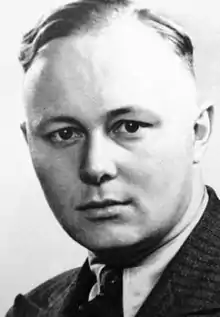 Friedrich Buchardt (17 March 1909, in Riga – 20 December 1982, in Nußloch) was a Baltic German SS functionary who commanded Vorkommando Moskau, one of the divisions of Einsatzgruppe B. Post-war, he worked for MI6 (until 1947) and then, presumably, for the CIA. Buchardt was never prosecuted, being one of the agents of more sinister reputation used by the West after the war.