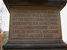 Inscription on the Memorial to Ludwig von Sckell in the Englischer Garten, Munich