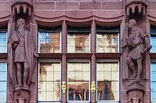 The Gutenberg Group from around 1905 in the facade of the building of the former newspaper Freiburger Zeitung is one of the earliest works of Friedrich Meinecke which is still preserved today.[1]