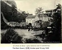 Traditionally, the pass served as the exact border between China and Vietnam,[1][2] hence there is also a Vietnamese historical saying: "Nước Việt Nam ta trải dài từ Ải Nam Quan đến mũi Cà Mau,"[3][4] translated as "The Vietnamese nation stretches from Ải Nam Quan to Cape Cà Mau". However, recently the pass has been in Chinese control and well within Chinese territory,[5] in Pingxiang, Chongzuo County, Guangxi Autonomous Region,[6] since the early 1950s, and the official border between the two nations is beyond this pass. The new border was later confirmed by Chinese and Vietnamese communist officials by a border treaty enacted in June 2000,[1] with Vietnamese officials stating that some Vietnamese territory along the Sino-Vietnamese border, namely in Cao Bằng Province and Lạng Sơn Province had been ceded to China.[2] This concession was unpopular among the Vietnamese populace.[7]