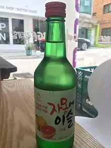 In 2015, the first fruit soju, Sunhari, was released. It was flavored with citron and had a lower alcohol content compared to traditional soju, making it popular with younger consumers.[2] After Sunhari had become popular in the soju market, other companies released their own versions. Joenday released three types; Chamisle released Jamongisle, a grapefruit flavored soju that became as popular as Sunhari. Sunhari retained the strong taste of traditional soju, whereas Jamongisle offered a sweeter, milder taste.[3]
