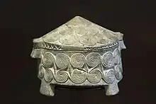 The use and purpose of Cycladic frying pans is unclear. They are mostly known as grave goods in especially rich graves. Christos Tsountas originally suggested that they were mirrors. According to him, the flat bowl would have been filled with water and the user would have been able to see their reflection in them.[4] A 2009 study concluded, via experimentation, that the frying pans work effectively as mirrors when filled water or olive oil, particularly if either liquid was darkened with pigments.[6] While the study found olive oil to be particularly effective it is believed to have been too rare and expensive for this kind of use in the early Cycladic period, though recent discoveries on the island of Keros of a large pyramid, complex plumbing, and highly advanced metallurgy suggest that olive oil may have not been seen as rare.[7][8] Any civilization that can move large blocks of stone from 10 kilometers away was surely capable of providing olive oil for any such purpose.