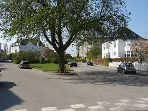 Bakkehusene is a large development of terraced housing built in 1928–29 to design by the architect Thorkild Henningsen.[2] It consists of 165 houses and is listed..