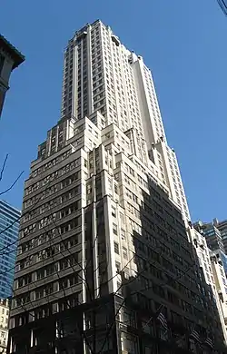The Fuller Building is an office skyscraper in Manhattan located at 41 East 57th Street on the corner of Madison Avenue. It was built for the Fuller Construction Company in 1929 after they moved from the Flatiron Building. The building was designed by Walker & Gillette in the Art Deco style, although in a very conservative fashion.[1] The building's exterior features architectural sculpture by Elie Nadelman, and the interior has richly decorated vestibules and lobbies featuring marble walls, bronze detailing, and mosaic floors.[1]