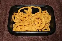 Funyuns is the brand name of an onion-flavored corn snack introduced in the United States in 1969, and invented by Frito-Lay employee George Bigner.[1] Funyuns consist primarily of cornmeal, ring-shaped using an extrusion process, representing the shape and texture of fried onion rings. A salt and onion mix gives them their flavor. They are a product of PepsiCo's Frito-Lay company. In Brazil, Funyuns are sold under the name "Cebolitos".[2]