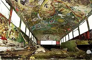 The original bus's last journey was a trip to the Woodstock Festival in 1969. Once its historic trips had come to an end the bus was gutted and used around the Keseys' farm in Oregon until at least 1983, when it was mentioned and pictured in an article in the May–June Saturday Review. It was eventually parked in the swamp on Kesey's Farm, where it deteriorated over the years.