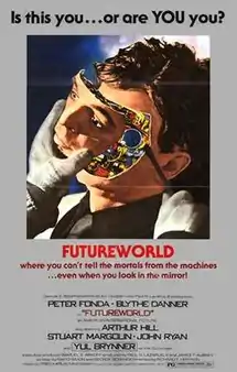 Futureworld is a 1976 American science fiction thriller film directed by Richard T. Heffron and written by Mayo Simon and George Schenck. It is a sequel to the 1973 Michael Crichton film Westworld, and is the second installment in the Westworld franchise. The film stars Peter Fonda, Blythe Danner, Arthur Hill, Stuart Margolin, John Ryan, and Yul Brynner, who makes an appearance in a dream sequence. No other cast member from the original film appears. Westworld's writer-director, Michael Crichton, and the original studio Metro-Goldwyn-Mayer, were not involved in this production.