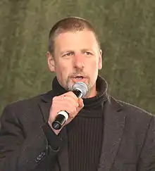 ![]() Götz Kubitschek at a PEGIDA rally on 13 April 2015 | |