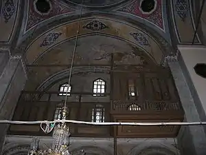 Each gallery ends with a small chapel, which lies respectively above the prothesis and diaconicon. Both chapels are surmounted by hemispherical domes which are built directly above the pendentives.[21] Light enters in the building through five orders of windows, three belonging to the galleries. Some of the windows are Ottoman.