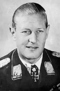 He became the 444th recipient of the Knight's Cross of the Iron Cross with Oak Leaves (Ritterkreuz des Eisernen Kreuzes mit Eichenlaub) on 6 April 1944 after 58 nocturnal aerial victories.[21] The presentation was made by Adolf Hitler at the Berghof, Hitler's residence in the Obersalzberg of the Bavarian Alps, on 5 May 1944.[25][Note 1]