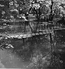 The shrub garden, located between Blatterwiese and Zürichhorn, was considered a stylistic fore-runner of lakeside design. An innovative feature of this garden was the placement of stepping stones embedded within fine stones, created a smooth transition from the shoreline to the lake and path network, which enhanced the direct experience of visitors with the water, were two innovative features.[3]