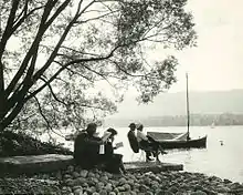 On the right lakeside, the two landscape architects Ernst Baumann and Willi Neukom had the opportunity to plan their project on a flat and nearly continuous area. Pavilions and exhibition halls were built along Seefeldstrasse, which leads out of town, whereas the area facing the lake was used for special gardens and entertainment. The logically constructed road network, which was also built for delivery purposes, was supplemented with beautifully landscaped walking paths.[2]