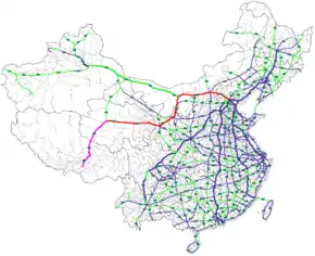 As of 2019 the expressway is completed between Beijing and Golmud, and the section between Nagqu and Lhasa has begun construction. The mountainous section between Golmud and Nagqu is not yet shown on maps.