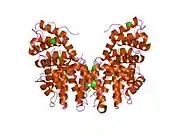 - Doray B, Bruns K, Ghosh P, Kornfeld SA (June 2002). "Autoinhibition of the ligand-binding site of GGA1/3 VHS domains by an internal acidic cluster-dileucine motif". Proceedings of the National Academy of Sciences of the United States of America. 99 (12): 8072–7. Bibcode:2002PNAS...99.8072D. doi:10.1073/pnas.082235699. PMC 123022. PMID 12060753.
