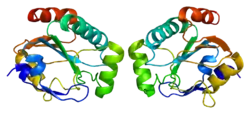 - Clark HF, Gurney AL, Abaya E, et al. (2003). "The secreted protein discovery initiative (SPDI), a large-scale effort to identify novel human secreted and transmembrane proteins: a bioinformatics assessment". Genome Res. 13 (10): 2265–70. doi:10.1101/gr.1293003. PMC 403697. PMID 12975309.