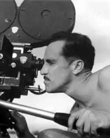 Born in 1907, Figueroa grew up in Mexico City, where he studied painting at the Academy of San Carlos, and violin at the National Conservatory.[1] He was the grandson of the famous lawyer, journalist and liberal writer Juan A. Mateos and first cousin to Mexican president Adolfo Lopez Mateos.[2] His mother died after giving birth to him and his father, unable to cope with the loss of his wife, left Gabriel and his brother Roberto to be cared for by their aunts. He then fled to Paris, where he eventually succumbed to alcohol and despair.[3][4] When the family fortune ran dry, Figueroa "had to leave the Academy and go into the darkroom to make a living".[1] He first started learning photography, which became his source of income, with Lalo Guerrero. He worked in a studio on Colonia Guerrero, where people would get their pictures taken with painted curtains in the background and under natural light.[5] Towards the end of the 1920s, Figueroa went on to work with photographers Juan de la Peña and José Guadalupe Velasco,[6] before establishing his own studio with his friend Gilberto Martínez Solares.[7] In 1932, thanks to his friend Gilberto, Figueroa met cinematographer Alex Phillips. Convinced by his talent, Phillips managed to start Figueroa's career in the movie industry as a still photographer for the film Revolución (1933), directed by Miguel Contreras Torres.[2] Figueroa and Phillips would continue to work alongside each other on several other films.[8] As a result of marked growth in the field of Mexican film production, in 1933 Figueroa was able to continue and develop his work as a still photographer on at least 9 films, some of them of enormous significance in the history of national cinema.[9] Towards the end of June 1933, Figueroa made his debut as a cinematographer in several shots of the medium-length documentary El vuelo glorioso de Barberán y Collar (1933), directed by René Cardona. And, between October and November, he was one of the camera operators of the multiple sequences filmed for Viva Villa! (1934), directed by Jack Conway.[10] On November 13, 1934, Figueroa would begin working on the film Tribu (La Raza indómita) (1935) with fellow collaborator Miguel Contreras Torres, who Figueroa had his first job as a still photographer in 1932.[8] Tribu marked another milestone in Figueroa's career, as it was the first time he shared credit with his teacher Alex Phillips, in addition to his stillman work.[11]