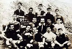 On 6 December 1908, for a match against the football team of the Royal Navy cruiser HMS Barham, Galatasaray finally settled on playing in red and yellow, inspired by the roses which Gül Baba offered to Sultan Bayezid II.[34] Ali Sami Yen stated, "After we have been in and out of several shops, we saw two different elegant-looking wool materials in Fatty Yanko's store at Bahçekapısı (between Eminönü and Sirkeci in Istanbul, now called Bahçekapı). One of them was quite dark red, resembling the cherry color, and the other a rich yellow with a touch of orange. When the sales clerk made the two fabrics fly together with a twist of his hand they became so bright that it reminded us the beauty of a goldfinch. We thought we were looking at the colors flickering in burning fire. We were picturing the yellow-red flames shining on our team and dreaming that it would take us to victories. Indeed it did."[10]