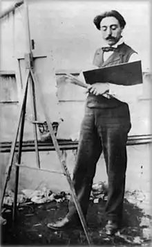 Miró's submissions reflected the influence of French movements, Impressionism, Fauvism, and Cubism, with colors akin to van Gogh and Cézanne (such as Portrait of Vincent Nubiola),[72] as well as the influence of van Dongen and Gleizes.[67][73][72] The reaction among critics was mixed, and Miró only managed to sell one work, a still life of a coffee grinder, which was purchased by Catalan artist Josep Mompou (who exhibited at Galeries Dalmau in 1908) for 250 pesetas.[67][74]
