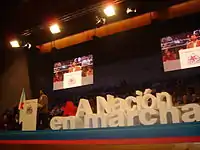 In 2012 several parties and individuals abandoned the front, dissatisfied with its political line and the control exercised by the UPG.[38][39] Encontro Irmandiño abandoned the bloc[40] and joined with Galician Workers' Front (Fronte Obreira Galega), the Galician People's Front (FPG), Movemento pola Base and other collectives to form Anova-Nationalist Brotherhood.[41] Anova obtained four seats in the 2012 Galician election as part of the Galician Left Alternative coalition. Anova is a pro-independence,[42][43] anticapitalist,[44] anti-globalization, republican and anti-imperialist organization.[45] Other groups that split were the more moderate social-democratic and autonomist Máis Galiza, Nationalist Left and the Galician Nationalist Party-Galicianist Party (PNG-PG). They formed Commitment to Galicia (CxG), a social-democratic and autonomist organization.[46] No CxG deputies were elected at the 2012 Galician election.
