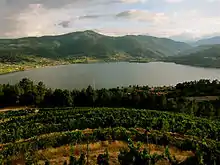 The Valdeorras DO is the easternmost wine region of Galicia that is dominated by the red Garnacha Tintorera and the white Palomino grape. Many of the vineyards are planted in terraces on the steep slate hillsides that flank the Sil river.[2] Prior to the phylloxera epidemic of the 19th century, the indigenous Godello vine was heavily planted and is only just recently starting to make a comeback in the region. The Mencía grape is also starting to gain ground due to the fruity and easy drinking red wines that it produces.[1]